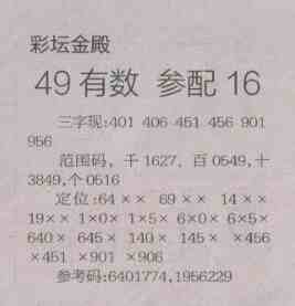 【彩坛金殿】第1486预测信息<特区报>