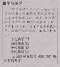 【平台杀码】第1486预测信息<特区报>