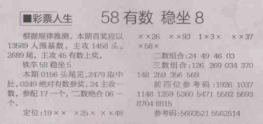 【彩票人生】第1487预测信息<特区报>