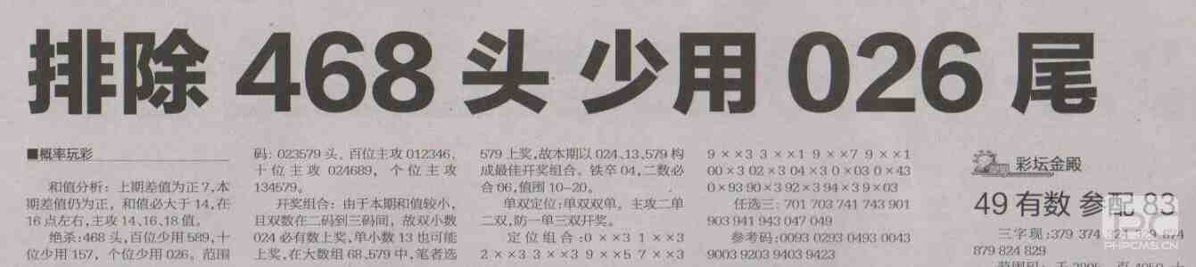 【概率玩彩】第1487预测信息<特区报>