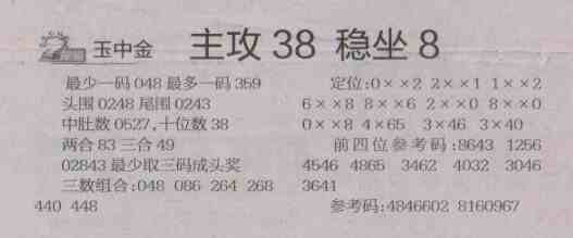 【玉中金】第1487预测信息<特区报>