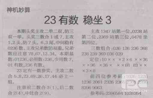 【神机妙算】第1488预测信息<特区报>