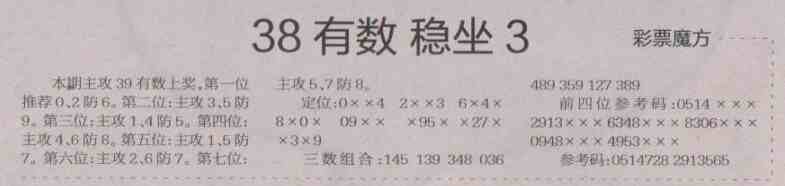【彩票魔方】第1489预测信息<特区报>