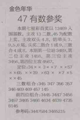 【金色年华】第1489预测信息<特区报>