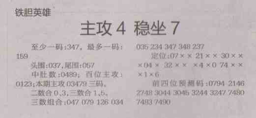 【铁胆英雄】第1489预测信息<特区报>