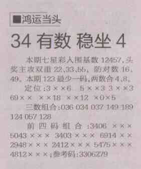 【鸿运当头】第1492预测信息<特区报>