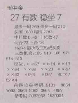 【玉中金】第1494预测信息<特区报>