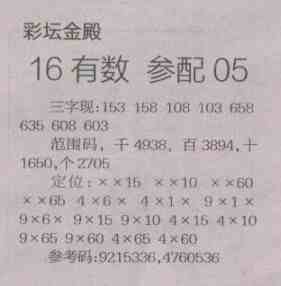 【彩坛金殿】第1495预测信息<特区报>