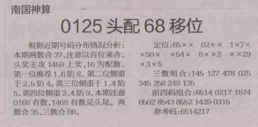 【南国神算】第1495预测信息<特区报>
