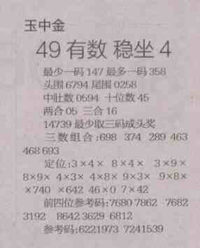 【玉中金】第1495预测信息<特区报>