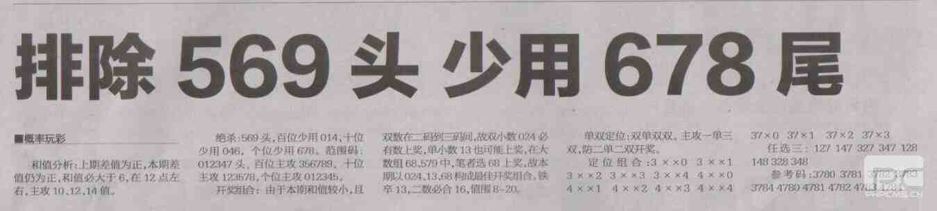 【概率玩彩】第1496预测信息<特区报>