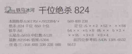 【铁马冰河】第1499期预测信息<特区报>