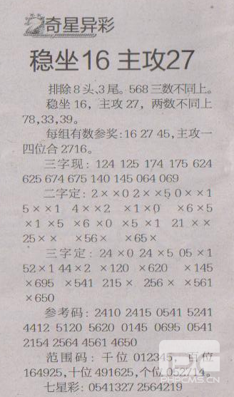 【奇星异彩】第1502期预测信息<特区报>