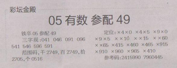 【彩坛金殿】第1506期预测信息<特区报>