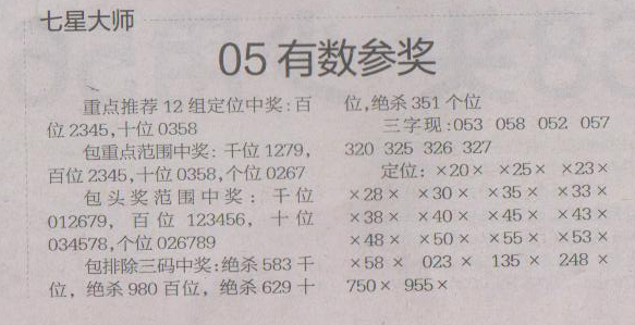 【七星大师】第1506期预测信息<特区报>