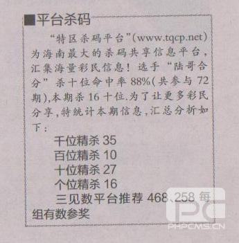 【平台杀码】第1507期预测信息<特区报>