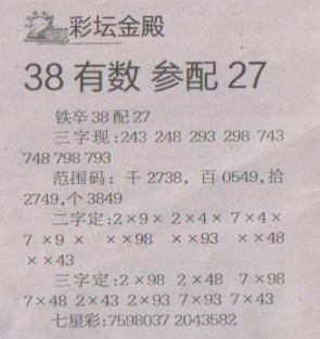 【彩坛金殿】第1508期预测信息<特区报>