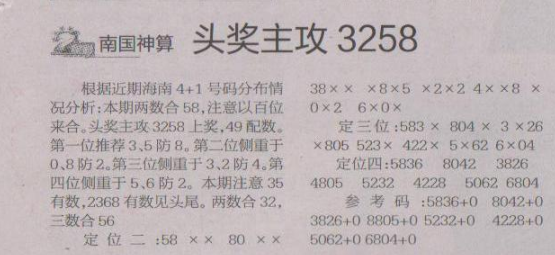 【南国神算】第1508期预测信息<特区报>