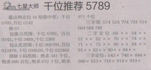 【七星大师】第1508期预测信息<特区报>