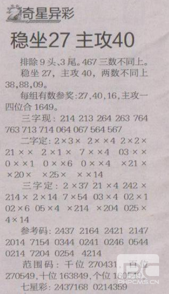 【奇星异彩】第1508期预测信息<特区报>