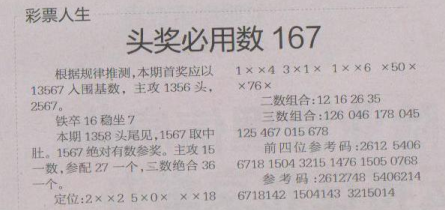 【彩票人生】第1510期预测信息<特区报>