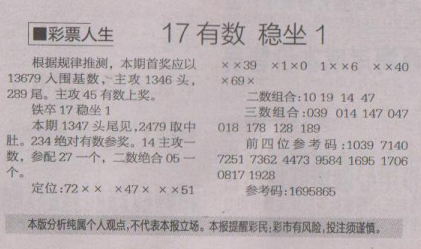 【彩票人生】第1511期预测信息<特区报>