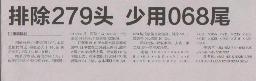 【概率玩彩】第1512期预测信息<特区报>