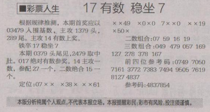 【彩票人生】第1514期预测信息<特区报>