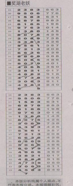 【奖湖老妖】第1514期预测信息<特区报>