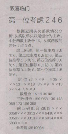 【双喜临门】第1515期预测信息<特区报>