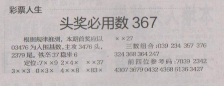 【彩票人生】第1515期预测信息<特区报>