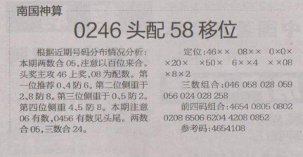【南国神算】第1515期预测信息<特区报>