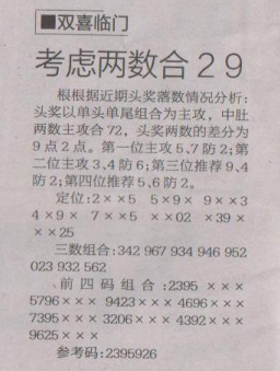 【双喜临门】第1516期预测信息<特区报>