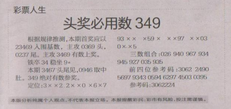 【彩票人生】第1516期预测信息<特区报>