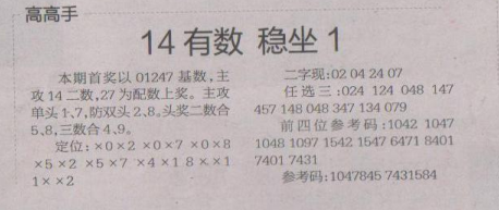 【高高手】第1516期预测信息<特区报>