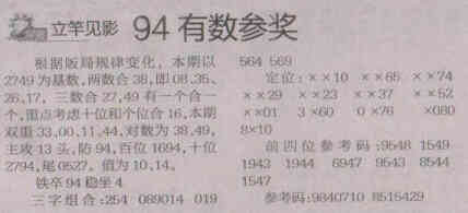 【立竿见影】第1517期预测信息<特区报>