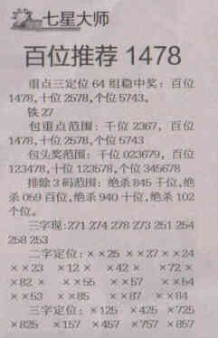 【七星大师】第1517期预测信息<特区报>