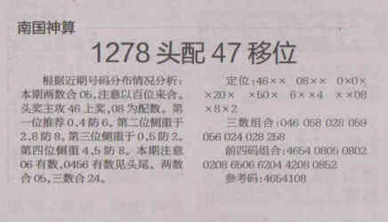 【南国神算】第1518期预测信息<特区报>