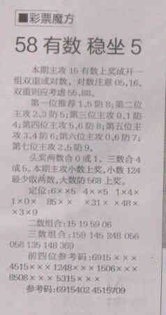 【彩票魔方】第1519期预测信息<特区报>