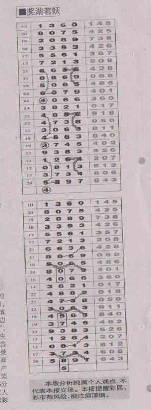 【奖湖老妖】第1520期预测信息<特区报>