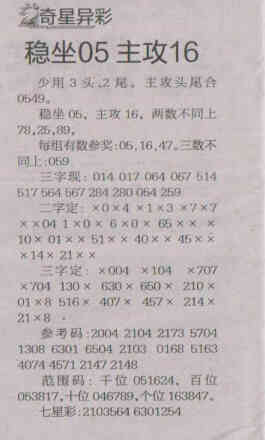 【奇星异彩】第1520期预测信息<特区报>
