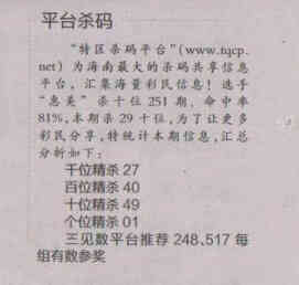 【平台杀码】第1521期预测信息<特区报>
