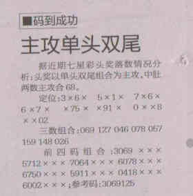 【码到成功】第1522期预测信息<特区报>