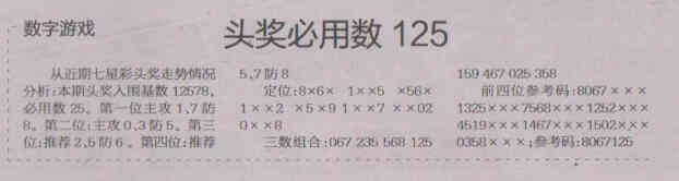 【数字游戏】第1522期预测信息<特区报>