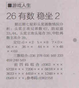 【游戏人生】第1522期预测信息<特区报>