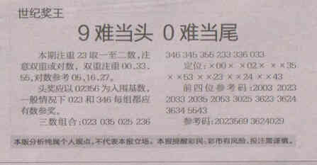 【世纪奖王】第1522期预测信息<特区报>