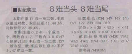 【世纪奖王】第1523期预测信息<特区报>