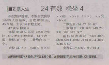 【彩票人生】第1526期预测信息<特区报>