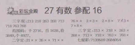 【彩坛金殿】第1526期预测信息<特区报>
