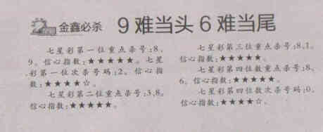 【金鑫必杀】第1526期预测信息<特区报>